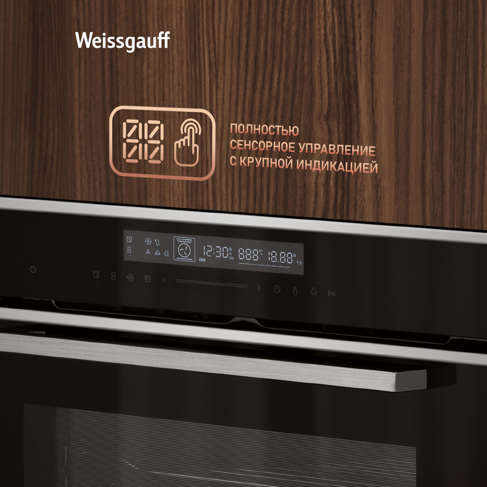 Удобный сенсорный дисплей с крупной индикацией - это настоящая гордость Weissgauff, ведь он не только является интуитивно понятным, но и великолепно реагирует на прикосновения с первого нажатия даже в том случае, если руки влажные или прохладные.
