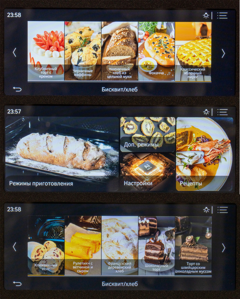 Технология SMART MENU с визуальным отображением на дисплее выбранной программы приготовления и предустановленной температурой где на выбор предлагается 34 готовых рецепта благодаря этому вам потребуется несколько прикосновений для выбора нужного блюда что позволит вам приготовить моментально быстро и вкусно, словно настоящий шеф-повар!