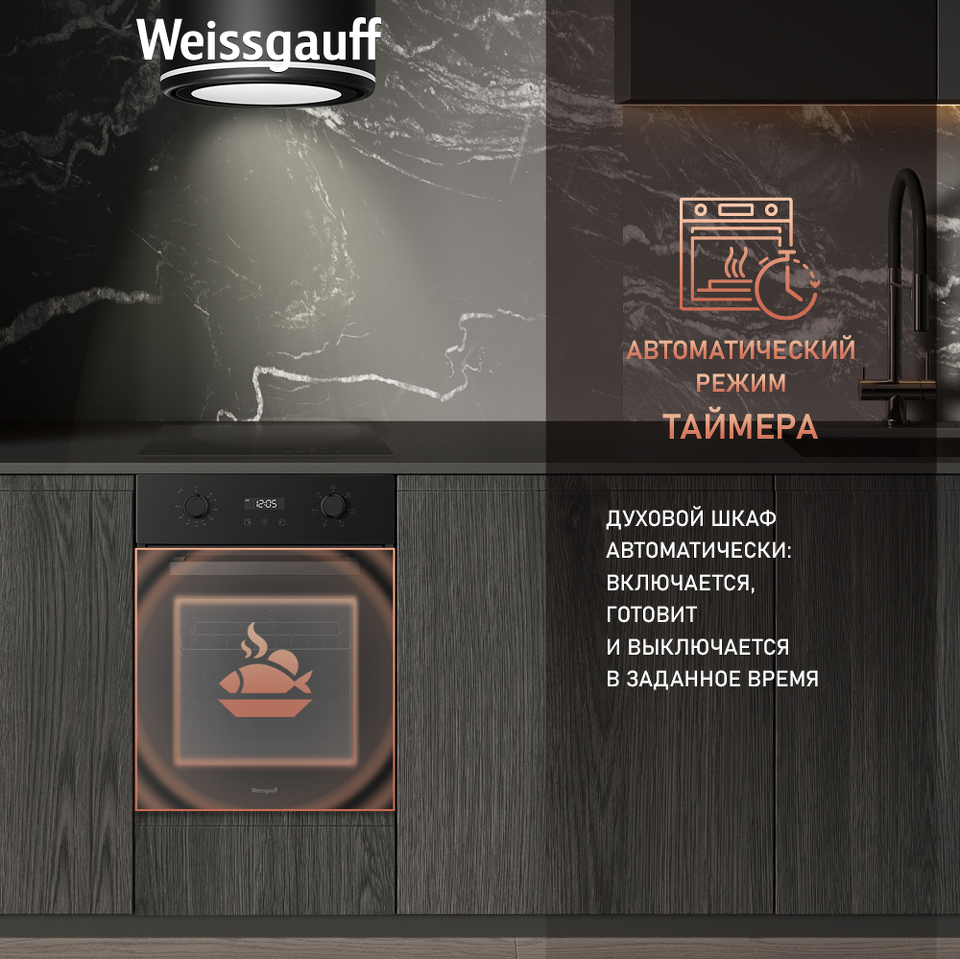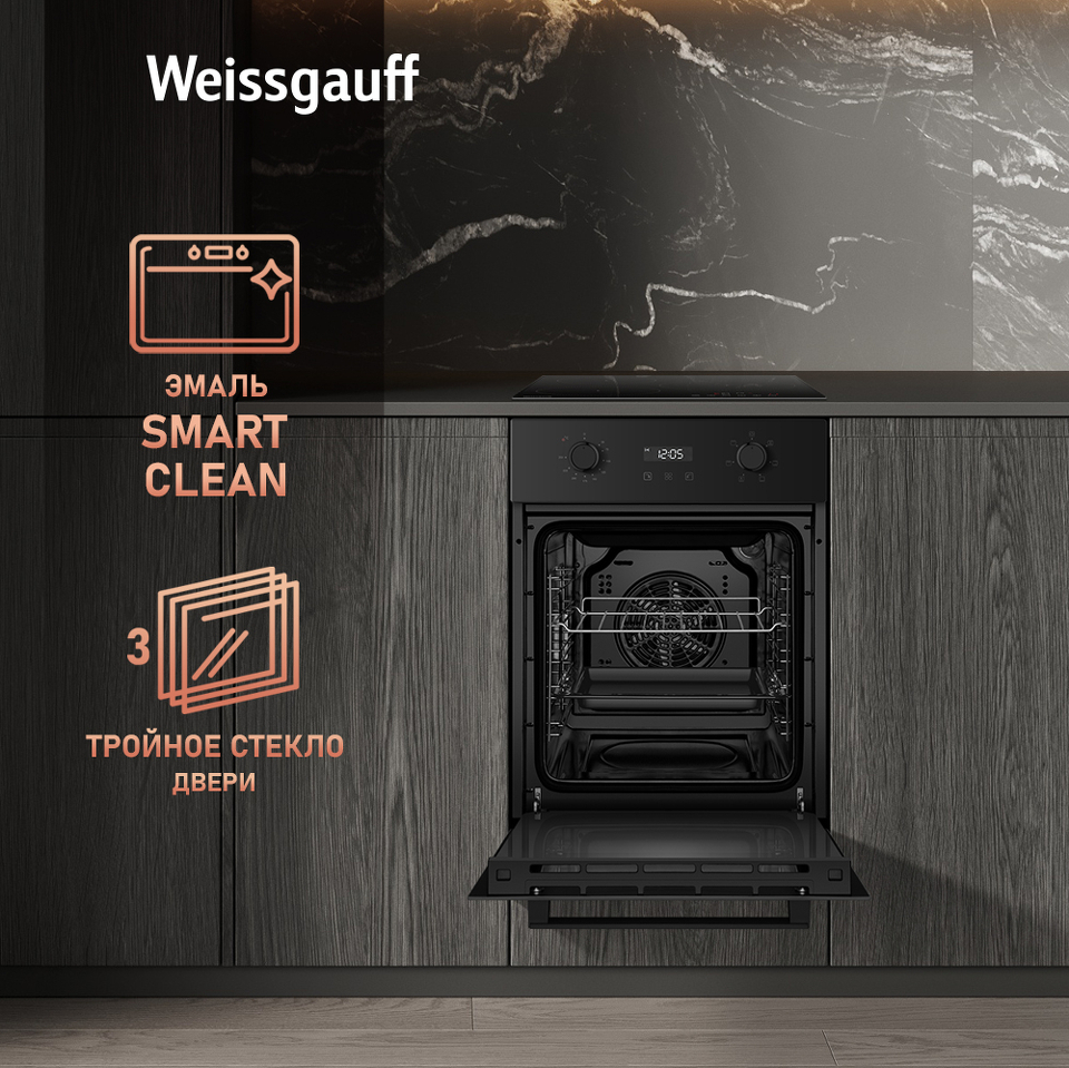 • Гидролизная очистка - особая технология, благодаря который вы раз и навсегда забудете те дни, когда духовой шкаф необходимо было с большим трудом вычищать, вкладывая в это непозволительно много времени и сил. Weissgauff понимает, что в современном мире время является одной из наивысших ценностей - поэтому мы оснастили данную модель функцией гидролиза: всего лишь добавьте небольшое количество воды, и духовой шкаф сам отпарит все загрязнения, используя "эффект сауны", после чего вам останется лишь провести по стенкам мягкой губкой, собрав их и удалив одним движением.