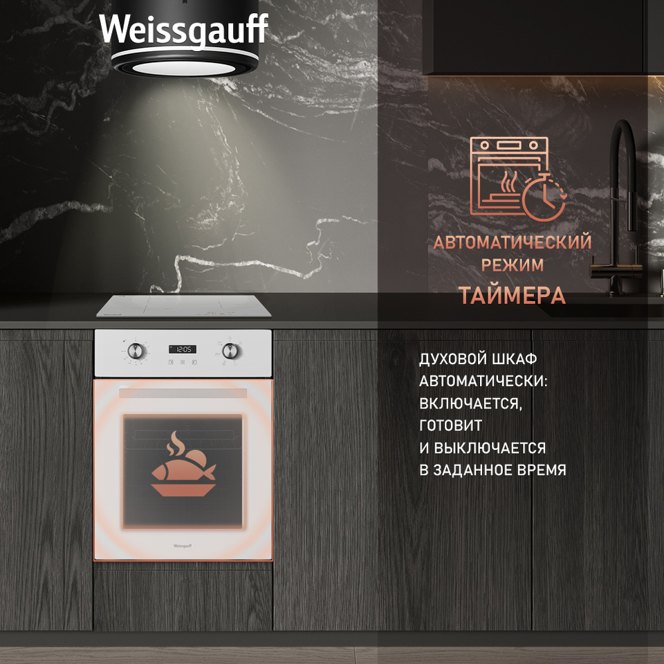 Объем 50 литров дает вам полную уверенность в том, что приобретая этот духовой шкаф, вы сможете разместить в нем сразу весь необходимый объем пищи, и даже профессионально работать на нескольких уровнях одновременно, порадовав себя и своих близких настоящим пиром, приготовленным в духовом шкафу Weissgauff на действительно ресторанном уровне.