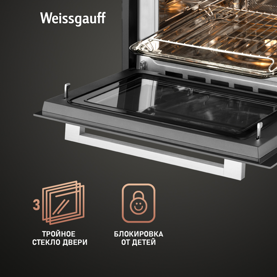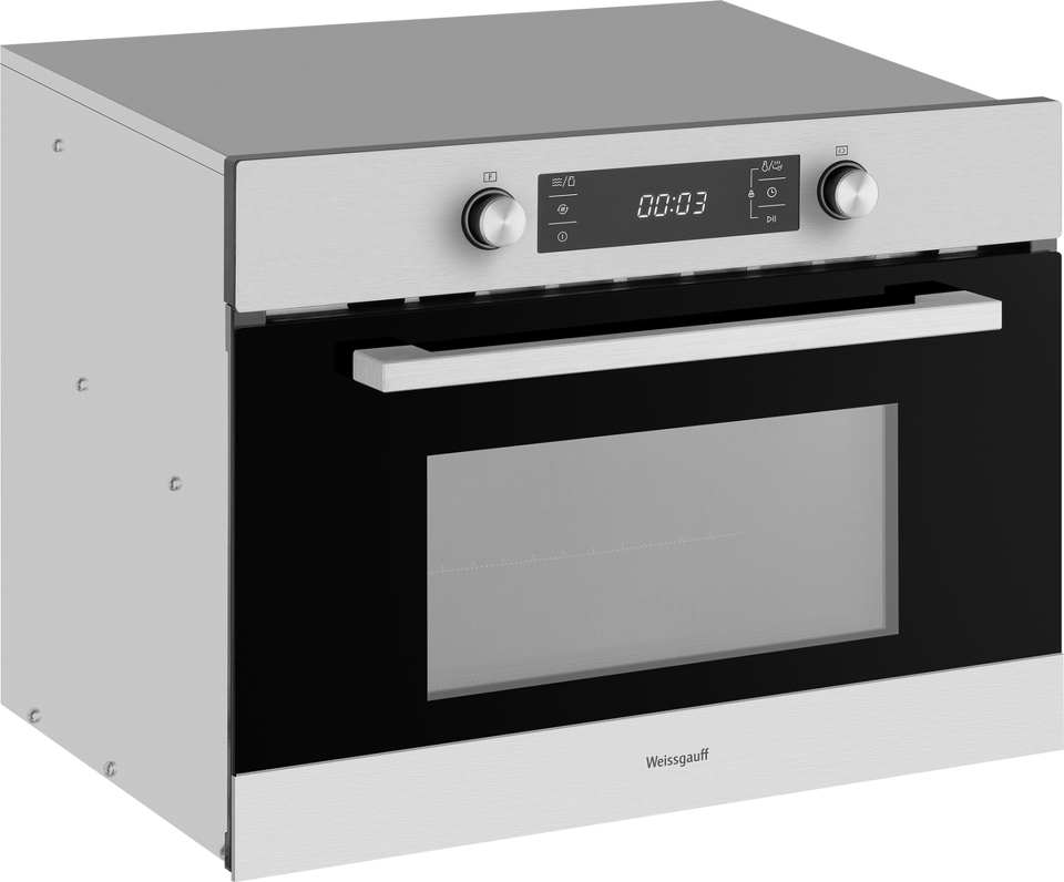 Компактный духовой шкаф с функцией СВЧ от Weissgauff, выполненный в цвете "нержавеющая сталь" - это функционал сразу двух полноценных устройств, воплощённый в одной модели, оснащенной тройным стеклом в дверце и расширенной комплектацией!