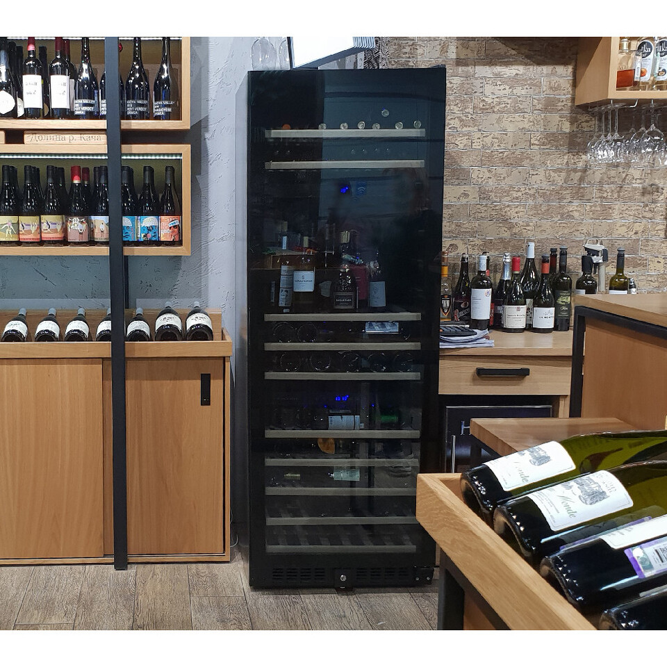 Регулируемый температурный режим каждой зоны шкафы в диапазоне от +5°C до +22°C подходит для хранения большинства сортов вин.