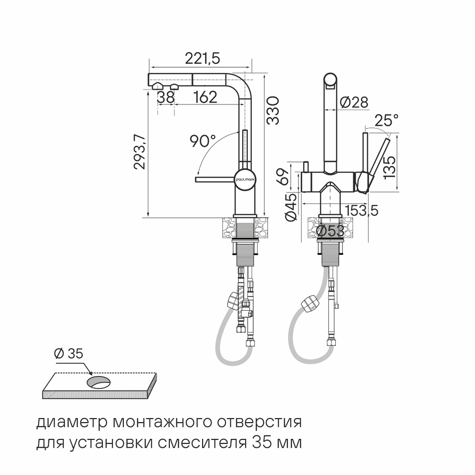 Выдвижной излив Нет