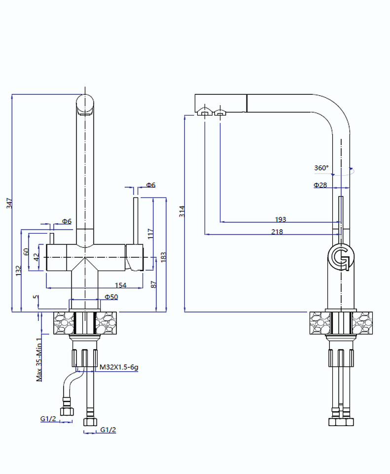 Высота излива, см 31.4