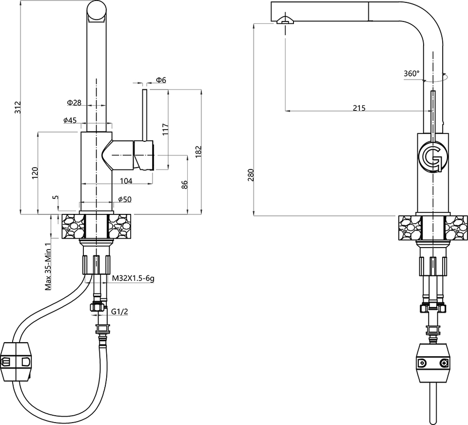 Высота излива, см 28