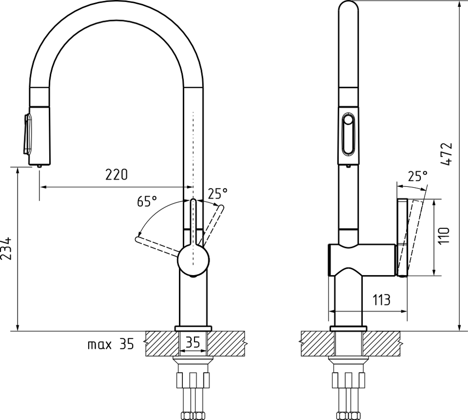 Rivelato PORTO U-обр. с выдвижной лейкой и краном питьевой воды D-35мм nero