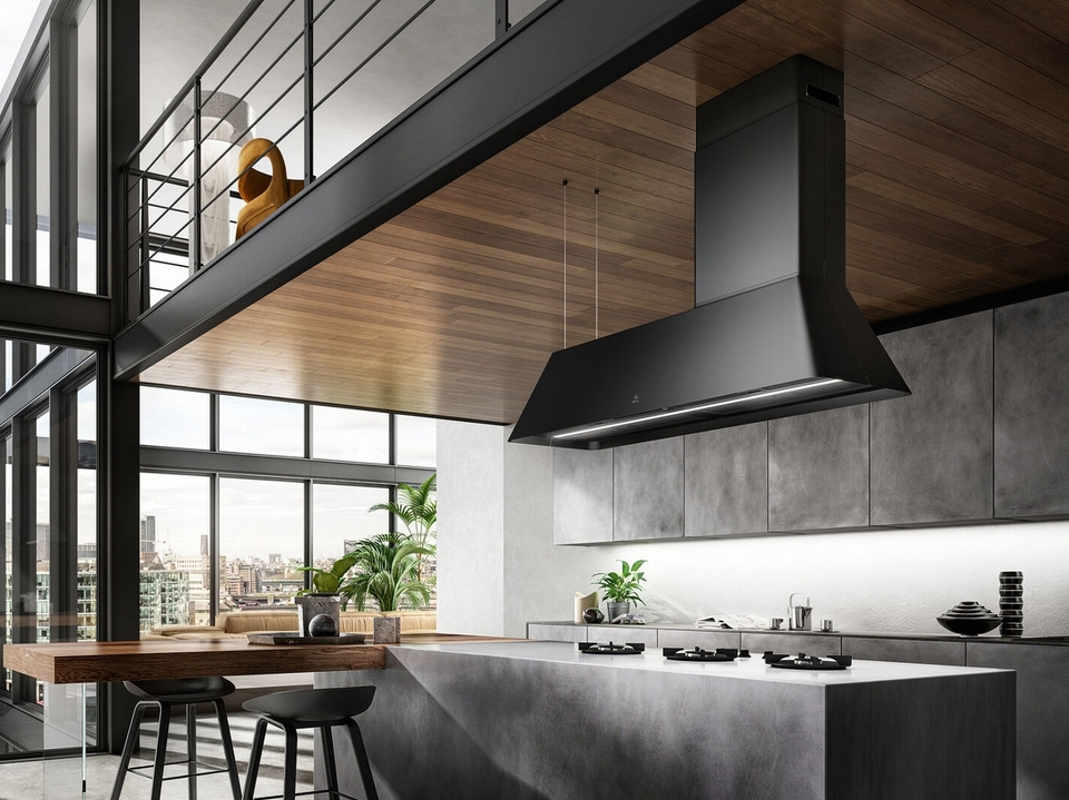 Декоративный короб Elica KIT0175017 выполнен в черном цвете и предназначен для вытяжек серии IKONA MAXXI PURE.