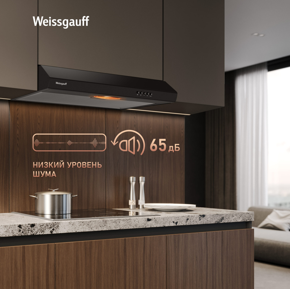 • Низкий уровень шума 65 дБ сделает работу с данной вытяжкой по-настоящему комфортной и приятной, ведь мы в Weissgauff знаем, как добиться высокой производительности без лишнего шума!