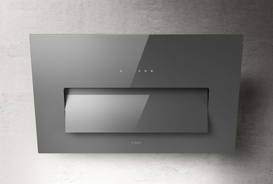 Вытяжка Elica BLOOM GR/A/85 относится к дизайнерскому ряду Design Fabrizio Crisà. Это значит, что модель сочетает в себе интересные стилевые элементы и функциональность, которые делают прибор украшением кухни и позволяют поддерживать в помещении качественный микроклимат. Данная техника шириной 85 см относится к наклонному типу, при этом монтаж осуществляется на стену. фасад выполнен из серого матового стекла. Оно легко моется, что помогает экономить силы во время уборки. Створка Moving Visor открывается, чтобы увеличить мощность всасывания. Таким образом очистка пространства от запахов и гари становится эффективнее.