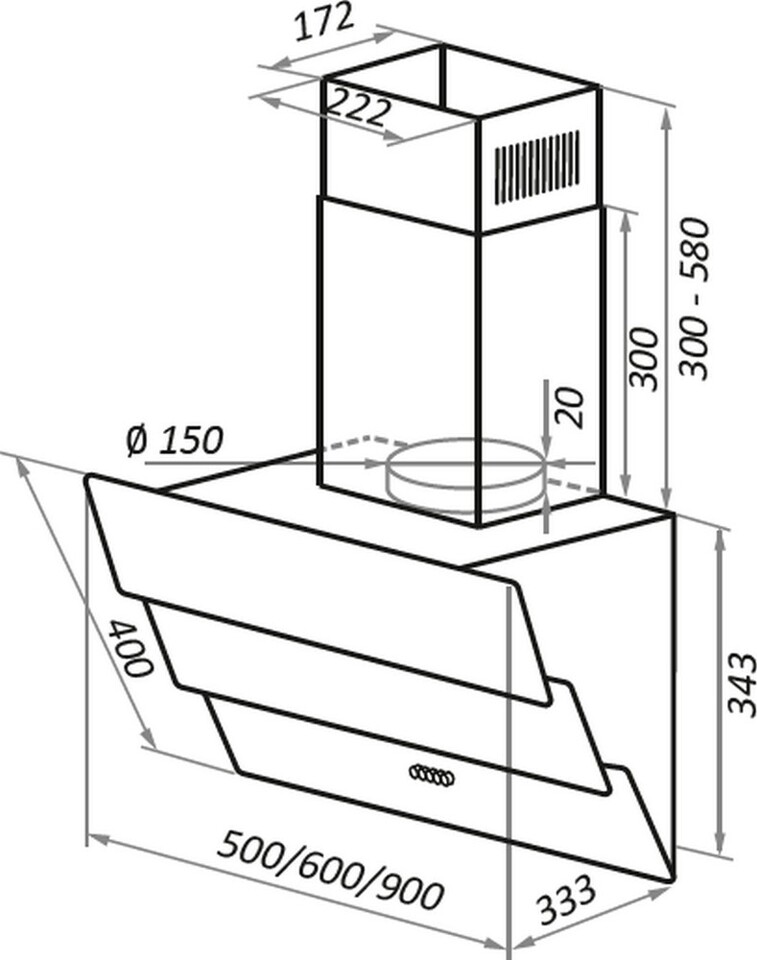 Стильная наклонная вытяжка шириной 60 см для большой кухни. Корпус из эмалированной стали. Дизайнерский фасад из каскада трех сверхпрочных закаленных стекол. Сенсорное управление с дисплеем.