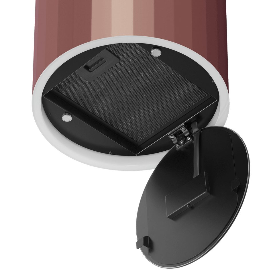 ДИЗАЙН Интерьерная вытяжка в стиле “современная классика”. Корпус вытяжки напоминает античную колонну с вертикальным профильным сечением. КОРПУС цилиндрической формы из нержавеющей стали с термостойким покрытием. В нижней части вытяжки находится алюминиевый многослойный жироулавливающий фильтр. Он легко вынимается и полностью разбирается, что сильно упрощает чистку