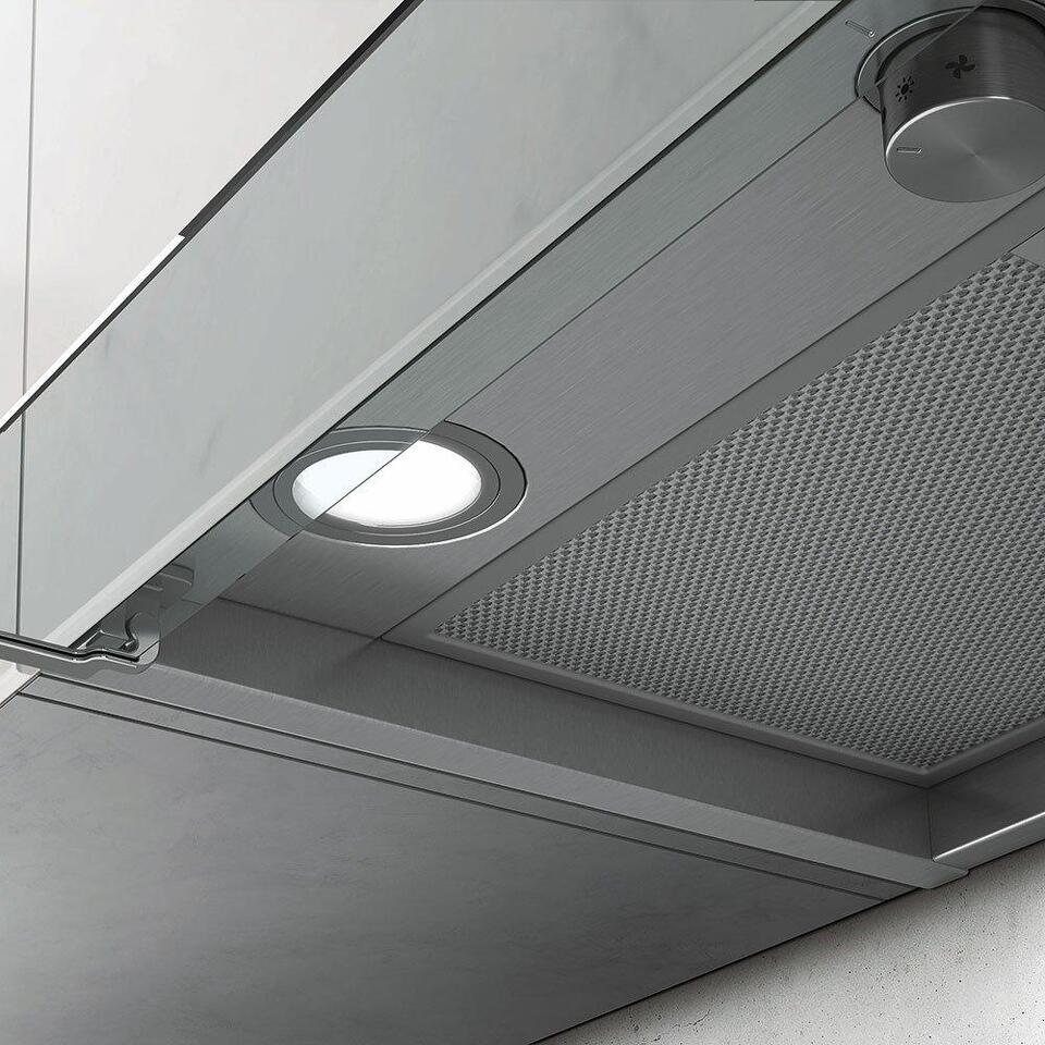 Дизайн. Вытяжка ELICA BOX IN IX/A/60 может быть как встроена в подвесной шкаф, так и вмонтирована между двумя шкафами. Стильная поверхность выполнена в цвете «нержавеющая сталь» и дополнена козырьком из прозрачного стекла. Геометричный дизайн позволяет с легкостью интегрировать устройство в кухонный интерьер с любым стилистическим оформлением. Две яркие галогенные лампы являются полноценным источником освещения варочной зоны, интенсивность света регулируется в трех положениях.