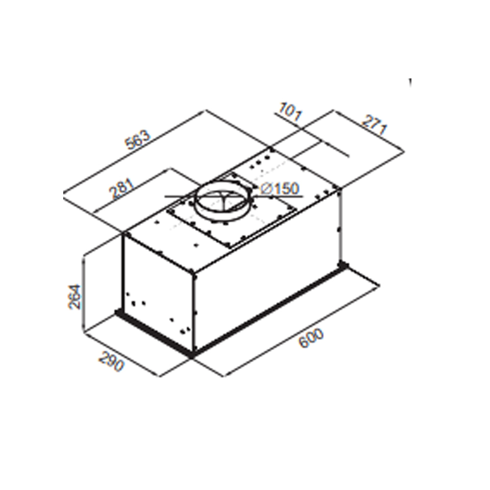 Мотор мощностью 120 Вт с максимальной производительностью 1000 м3/ч. Использование высококачественных материалов обеспечивает низкий уровень шума работы вытяжки – не более 52 дБ.