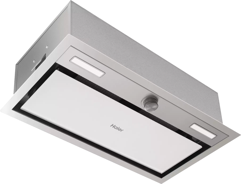 Вытяжка Haier HVX-BI664GWX предназначена для полного встраивания в кухонный шкаф. Рамка внешней части вытяжки изготовлена из нержавеющей стали и практически не выступает из кухонной панели, а жировой фильтр закрыт стеклянной панелью, вокруг которой происходит всасывание воздуха. Такую панель легко мыть, а периметрическое всасывание считается более эффективным. Для удобства управления предусмотрен утапливаемый регулятор выбора режима работы. Модель имеет хорошие характеристики производительности, до 560 м³ воздуха в час, и может эффективно удалять загрязненный воздух, как в режиме воздухоотвода, так и в режиме рециркуляции при условии установки дополнительного угольного фильтра. Яркое светодиодное освещение обеспечит комфорт и удобство при приготовлении блюд на плите.