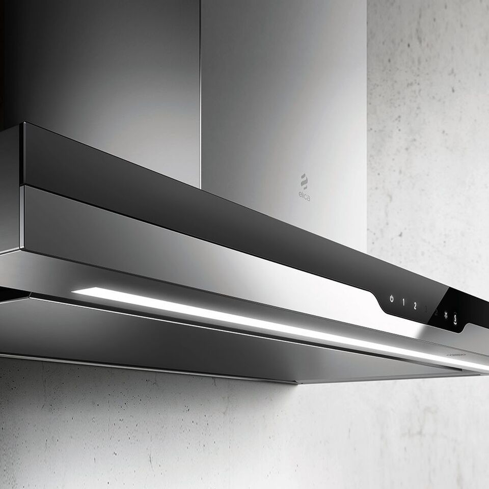 Дизайн. Вытяжка ELICA METEORITE IX/A/120 представляет собой идеальное сочетание элегантности и эффективности. Сочетание черного стекла и полированной нержавеющей стали идеально подходит для любого интерьера кухни, идеально гармонируя с другой бытовой техникой. Подсветка расположенного на стекле управления touch control служит не только функциональным и удобным элементом, но и изысканным дизайнерским решением.