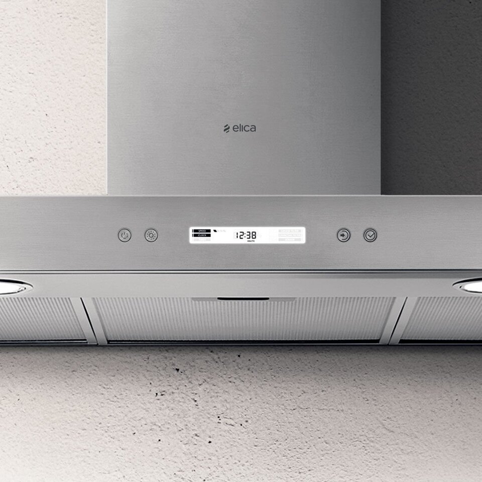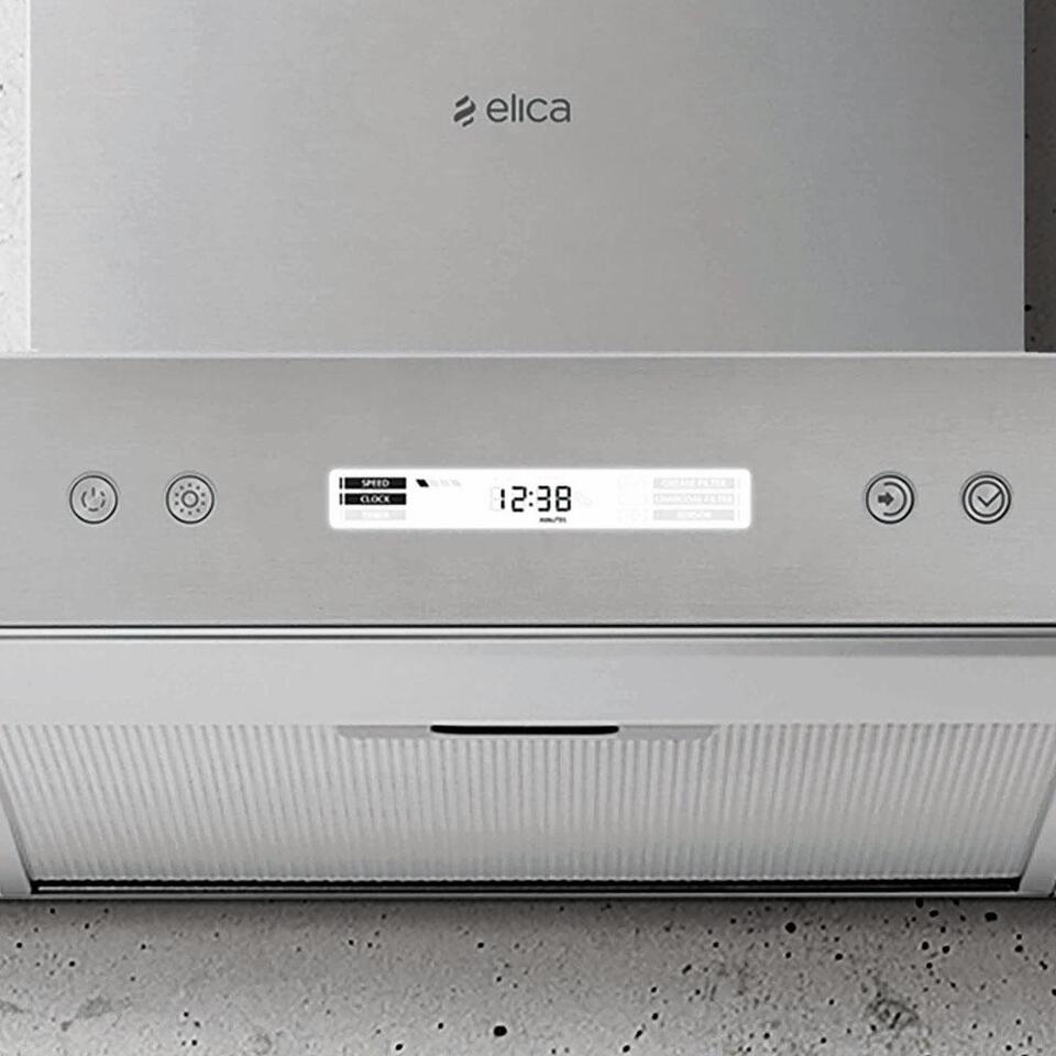 Дизайн. Настенная вытяжка ELICA SPOT PLUS IX/A/60 шириной 60 см имеет универсальный геометричный дизайн. Модель выполнена в цвете «нержавеющая сталь» и может быть интегрирована в любой современный кухонный интерьер. Фасад дополнен информативным дисплеем, на котором отображаются установленные настройки.