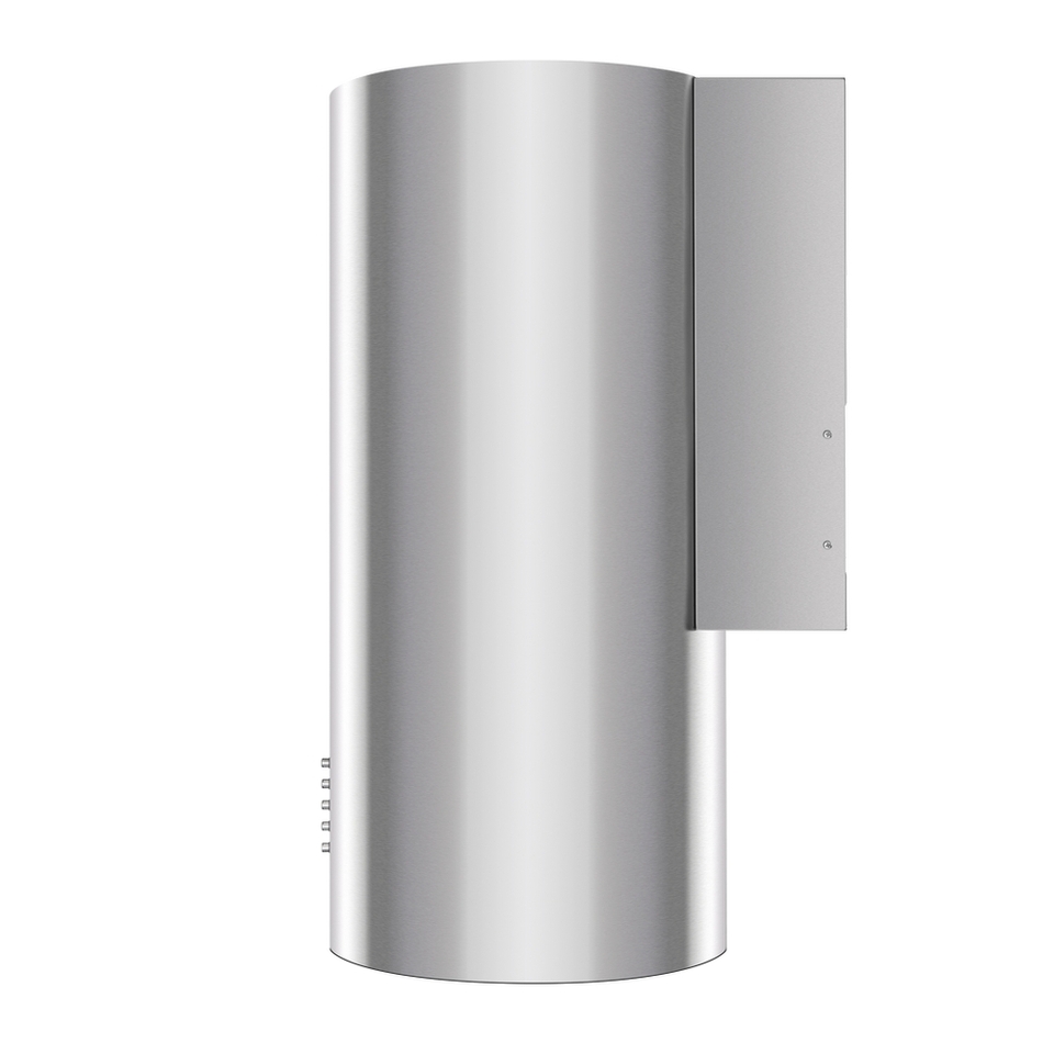 Корпус цилиндрической  формы, выполненный из матированной нержавеющей стали, монтируется на стене над варочной поверхностью. Торец рабочей поверхности имеет черную акцентную окантовку. Специальный многослойный жироулавливающий фильтр выполнен из алюминия.