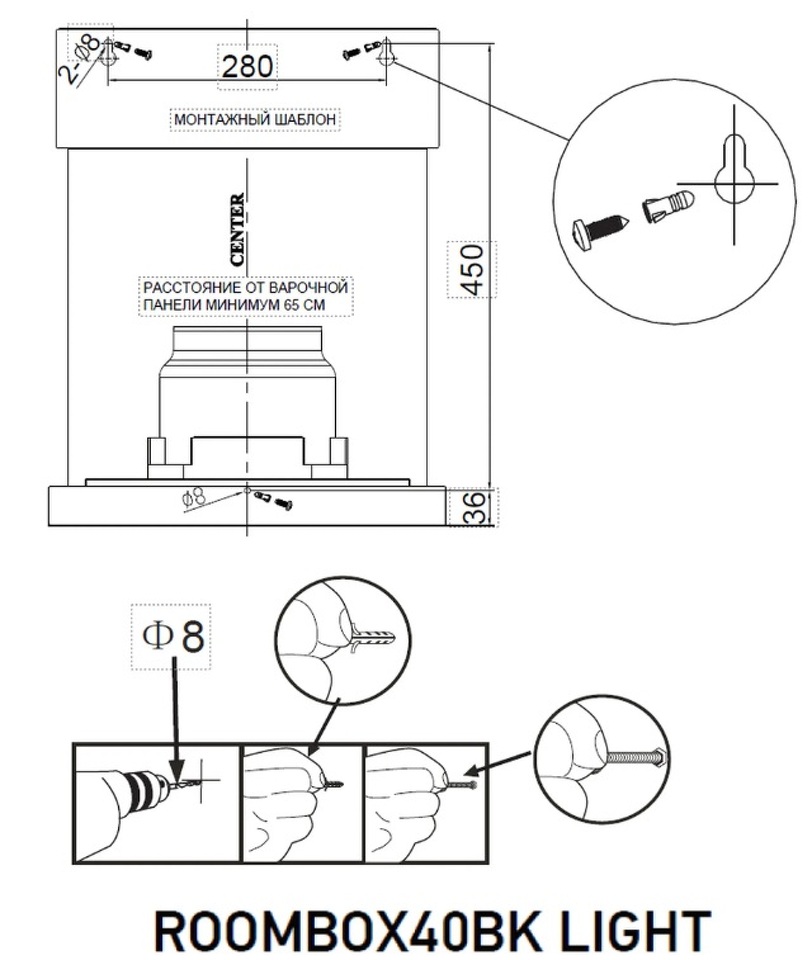 Фото Цилиндрическая вытяжка Meferi RoomBox40BK LIGHT
