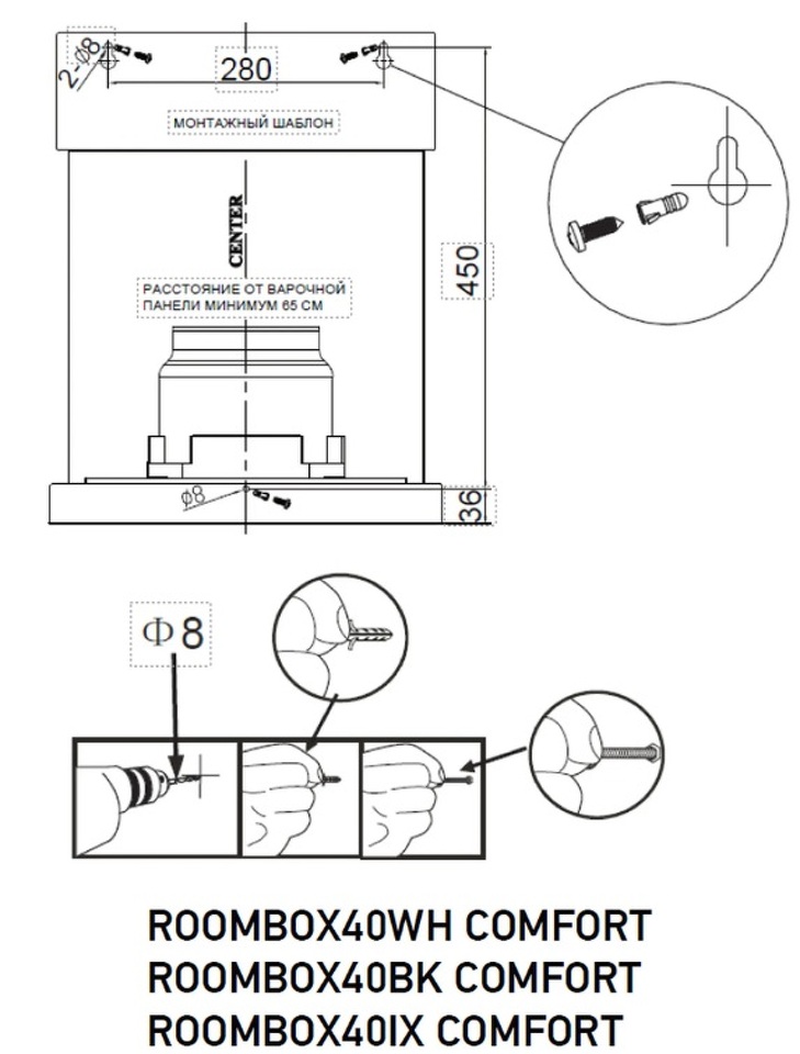 Тип установки вытяжки Настенный